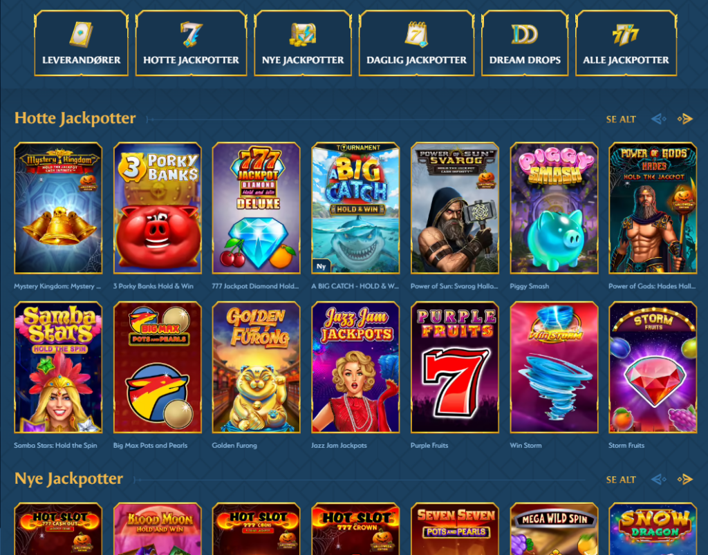 For de som drømmer om de virkelig store gevinstene, tilbyr Oceanspin et bredt utvalg av jackpotspill. Her finner du daglige jackpotter, progressive jackpotter og de nyeste spillene fra bransjens ledende jackpotleverandører. Selv om jackpotspillene ikke kan spilles med bonusmidler, er de definitivt verdt et besøk for spenningen og muligheten til å vinne stort.