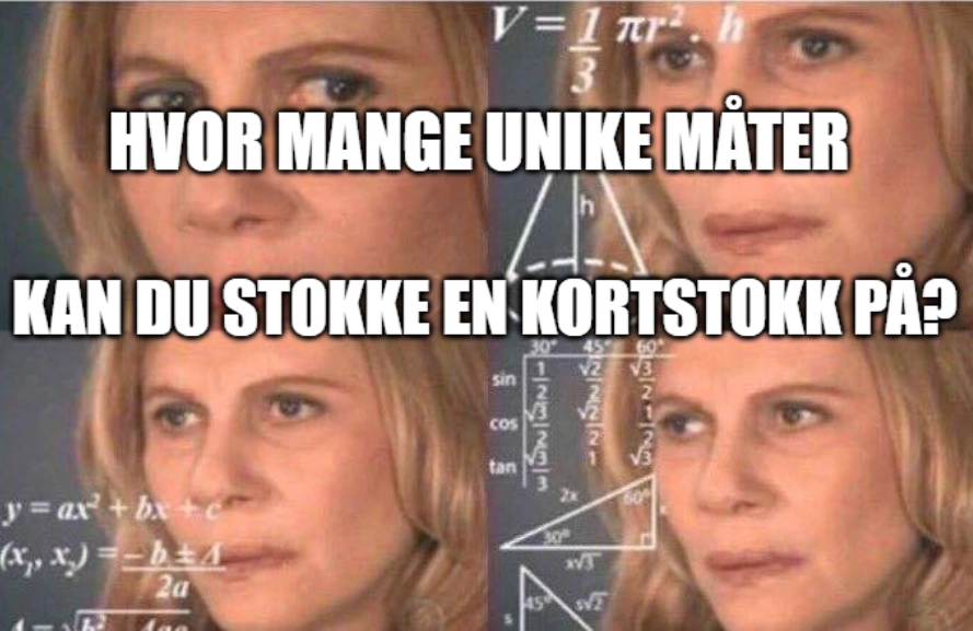 For å svare på det, må vi se på hvor mange unike måter det finnes å blande en kortstokk på!